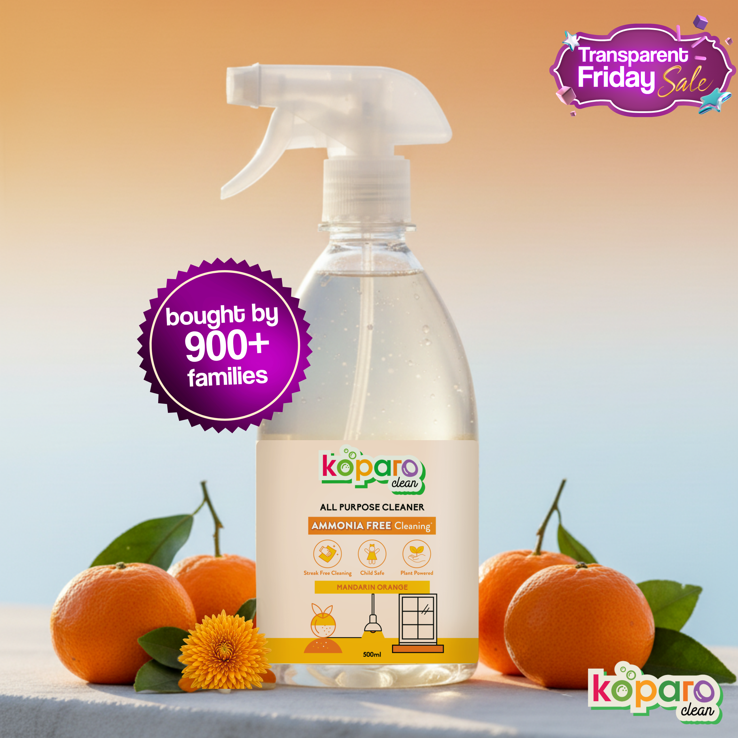 Koparo All Purpose Spray is your go-to natural cleaning spray designed for every corner of your home. Made with biodegradable, plant-based ingredients, this eco-friendly APC (all purpose cleaner) effectively cleans, shines, and freshens surfaces—without harsh chemicals or toxic residues. Whether it’s glass, mirrors, countertops, or other household surfaces, Koparo delivers spotless shine and safe hygiene wherever you need it.
