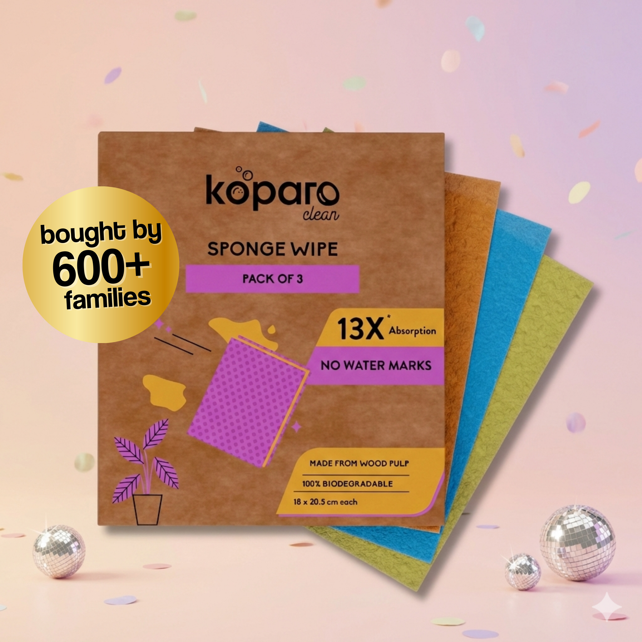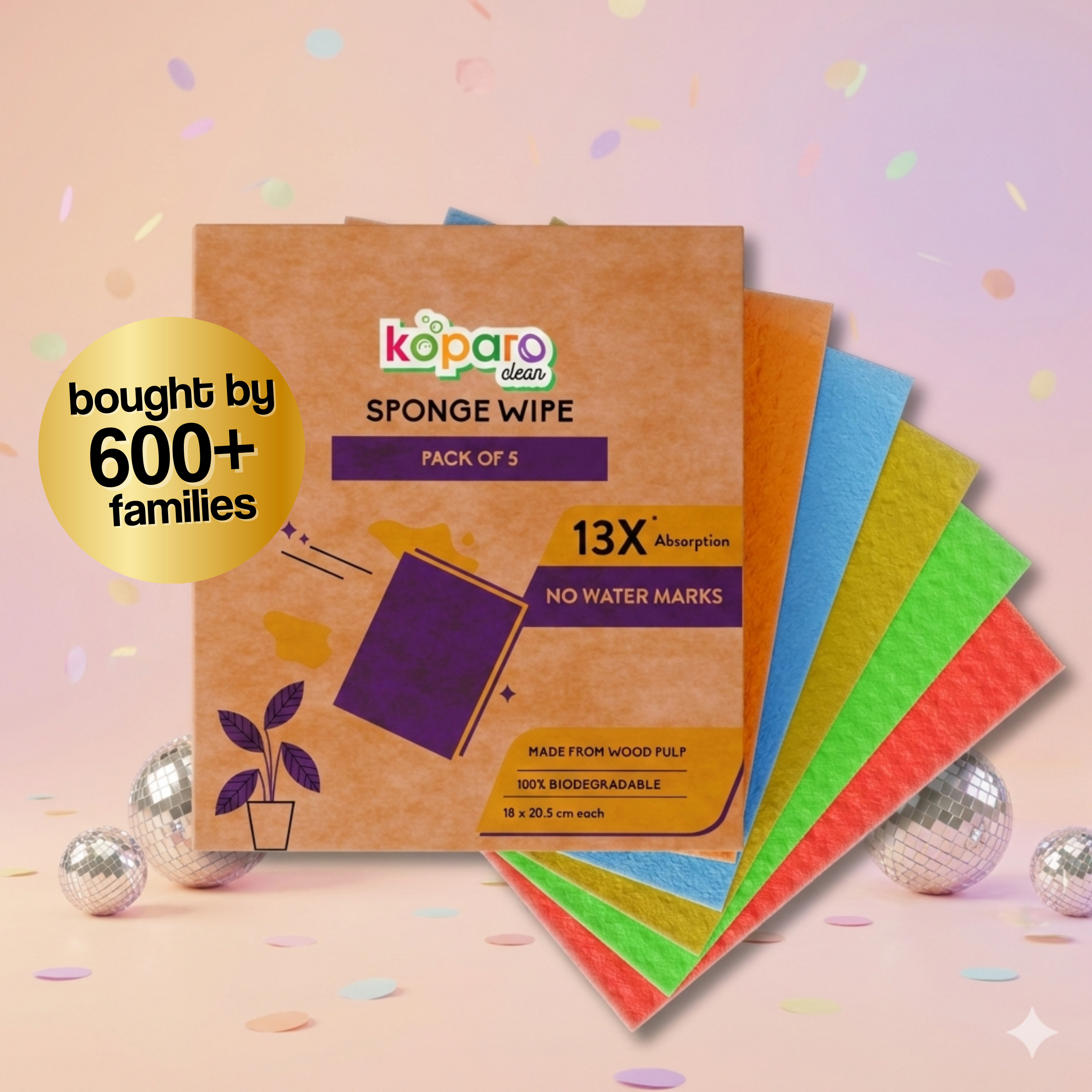 You can use the sponge wipes with just water or Koparo All Purpose Cleaner for the best cleaning experience. Just add some water or Koparo All Purpose Cleaner to the sponge wipe, swipe the mess, wash the sponge wipe with water after use and leave it to dry.