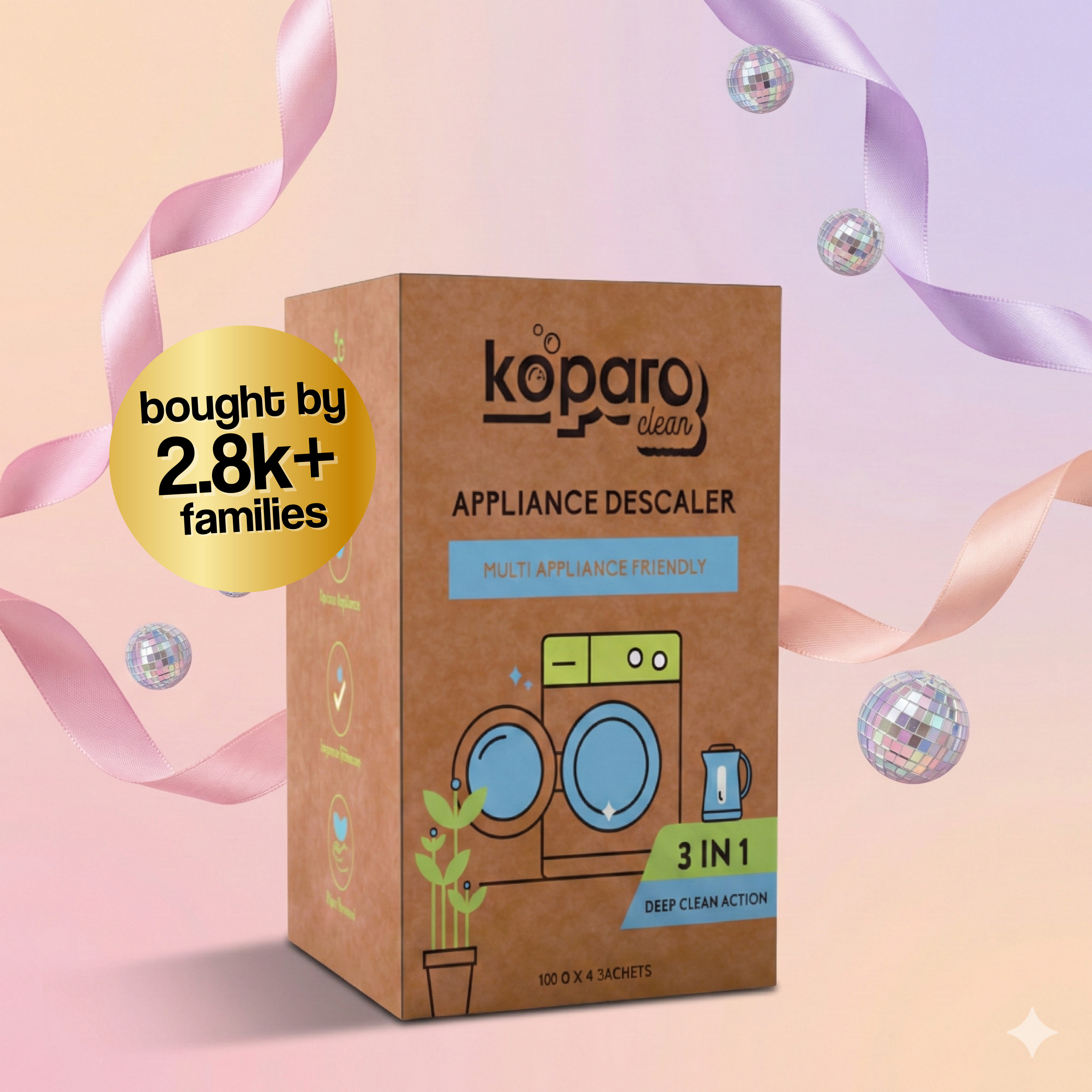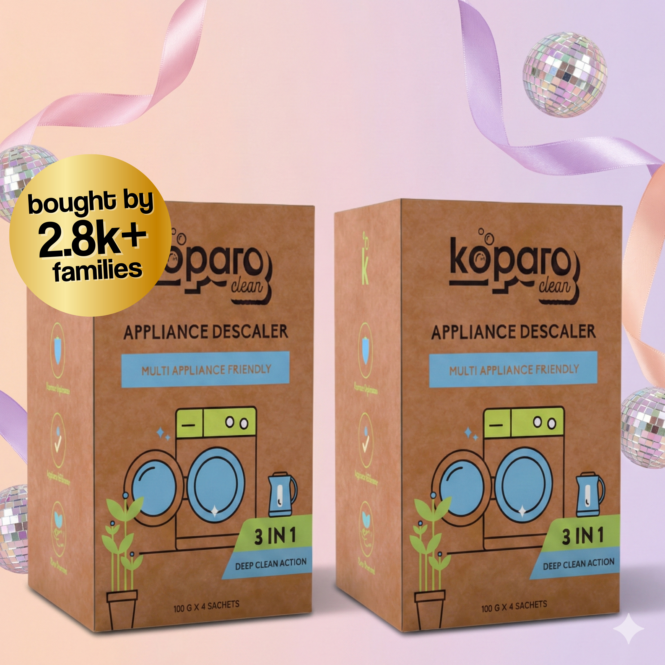Koparo’s appliance descaler is used to remove limescale, grime, and dirt from washing machines, shower heads, and kettles.