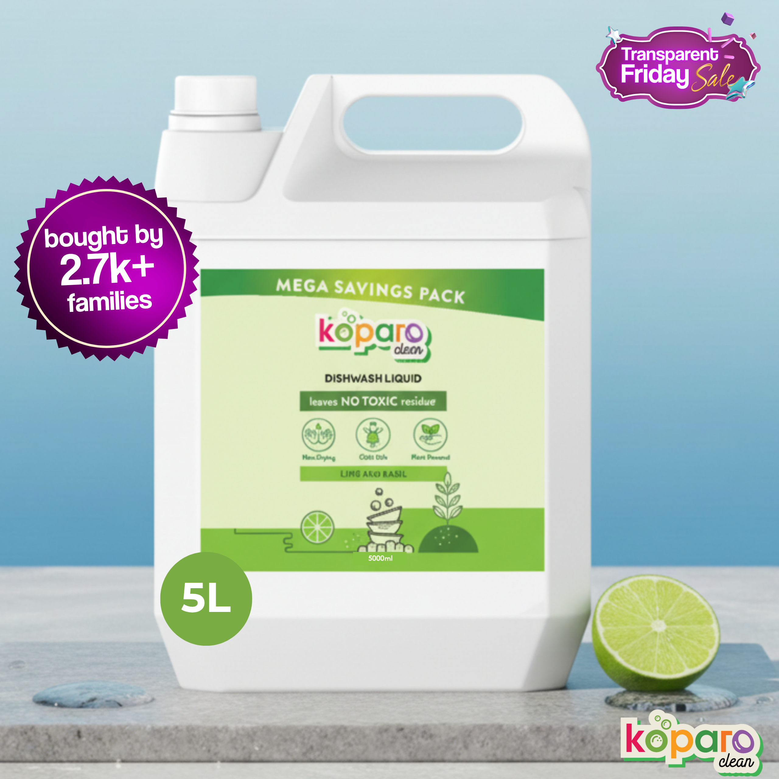 Dishwashing Liquid 5L – Lime & Basil | Bulk Refill – Koparo – Koparo Clean