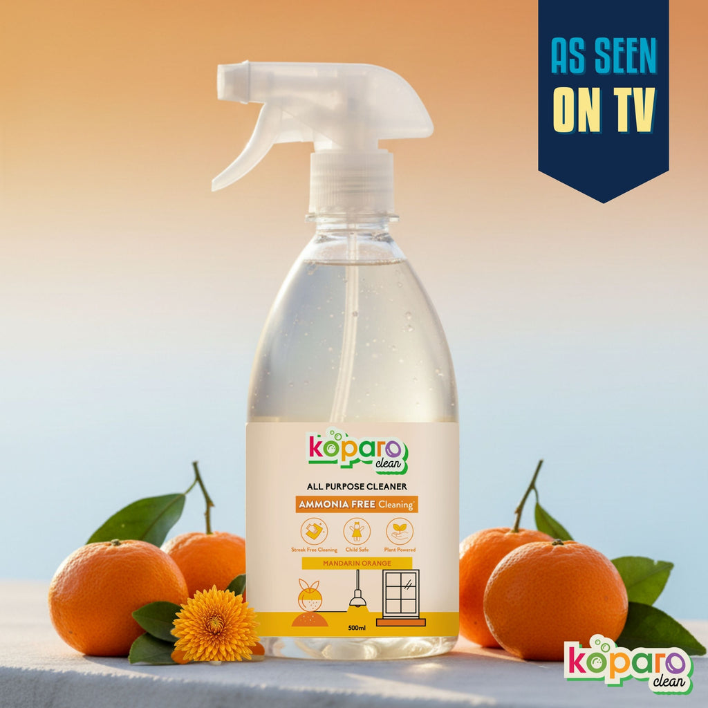 Koparo All Purpose Spray is your go-to natural cleaning spray designed for every corner of your home. Made with biodegradable, plant-based ingredients, this eco-friendly APC (all purpose cleaner) effectively cleans, shines, and freshens surfaces—without harsh chemicals or toxic residues. Whether it’s glass, mirrors, countertops, or other household surfaces, Koparo delivers spotless shine and safe hygiene wherever you need it.