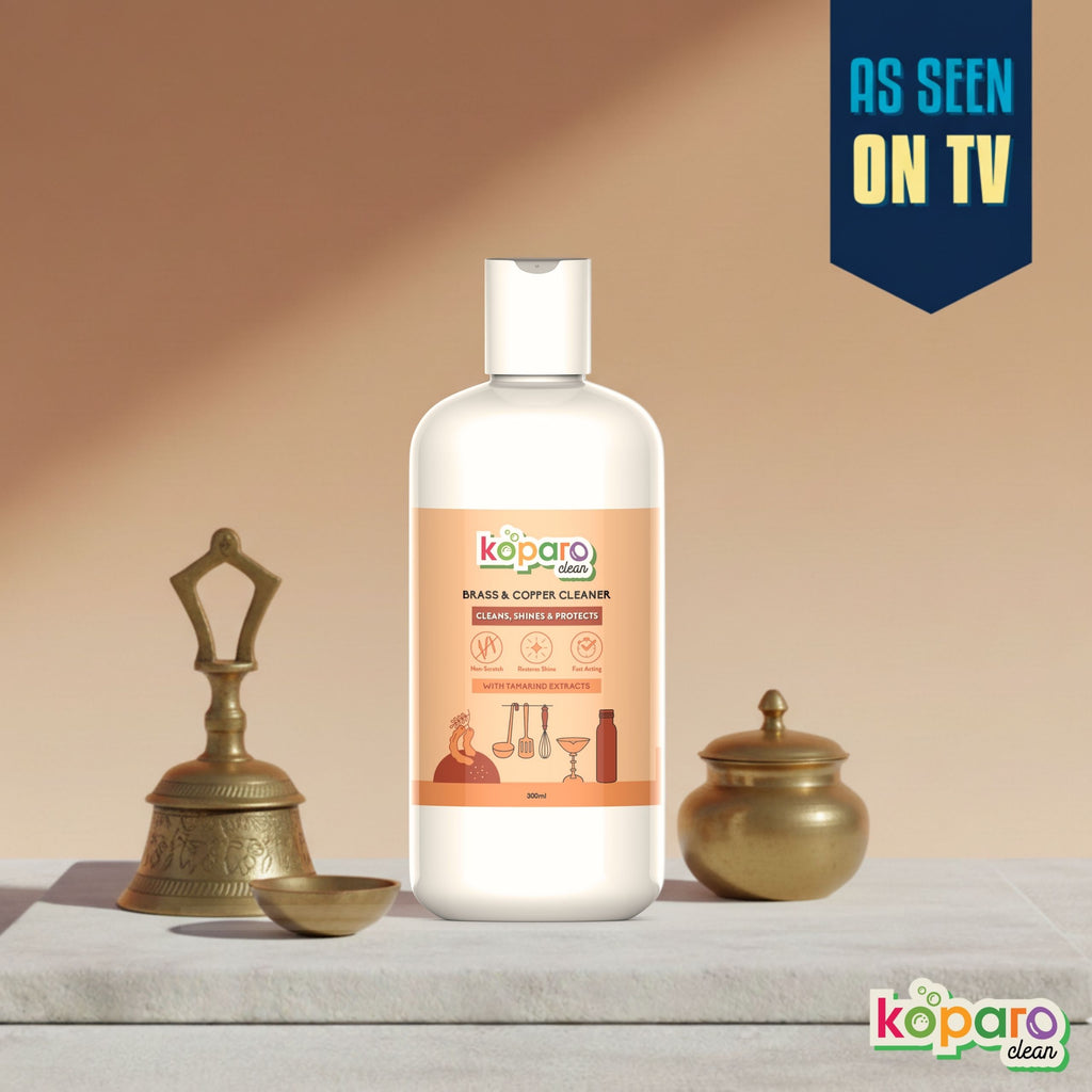 Apply a small amount of Koparo's Brass & Copper Cleaner to a soft cloth or sponge, gently rub the surface, then rinse thoroughly and wipe dry with a clean cloth.