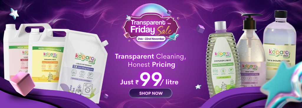 It’s Koparo’s biggest clean-up of the year! Every product is priced at just ₹99 per litre — no hidden tricks, just transparent prices for honest cleaning.