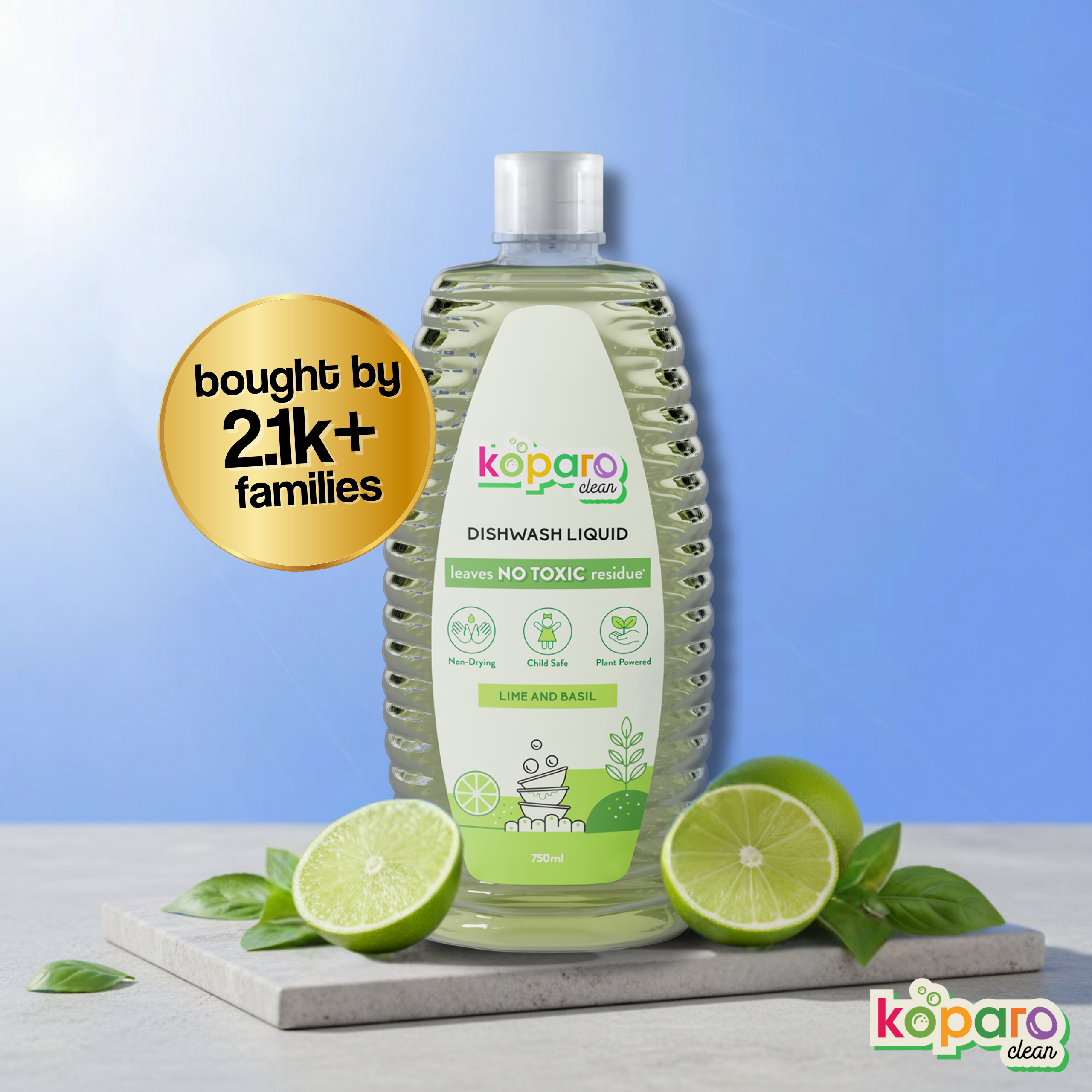 Dishwashing Liquid 750ml – Lime & Basil | Natural & Safe – Koparo – Koparo Clean